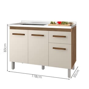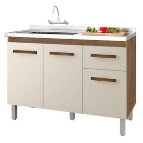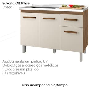 Produto: Balcão sem Tampo | Tonalidade: Multicolorido | Acompanha Pia de Cozinha: sem Pia de Cozinha Cor: Savana Off White