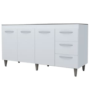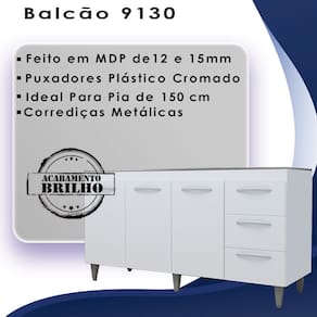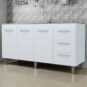 Balcão Sem Tampo Para Pia Diana, uma excelente opção para sua casa. Estrutura em MDP de 12/15mm, com acabamento em pintura UV. Composto por 03 portas com dobradiças metálicas, uma prateleira interna para maior aproveitamento do espaço, 03 gavetas com corrediças metálicas, ideal para usar com pia de 150cm (pia não inclusa), puxadores em plástico cromado, pés fixos de 16,5cm que garantem a firmeza que o móvel precisa, possui perfeita combinação com os mais variados ambientes. Você pode compor sua cozinha da forma que desejar. Este móvel chegará em sua casa separado em 01 volume.