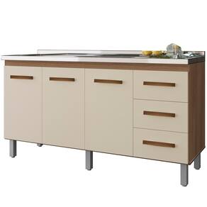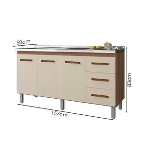 Balcão Sem Tampo Para Pia Emily, uma excelente opção para sua casa. Estrutura em MDP de 12/15mm, com acabamento em pintura UV. Composto por 03 portas com dobradiças metálicas, uma prateleira interna para maior aproveitamento do espaço, 03 gavetas com corrediças metálicas, ideal para usar com pia de 160cm (pia não inclusa), puxadores em plástico cromado, pés fixos de 16,5cm que garantem a firmeza que o móvel precisa, possui perfeita combinação com os mais variados ambientes. Você pode compor sua cozinha da forma que desejar. Este móvel chegará em sua casa separado em 01 volume.