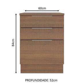 Este balcão de 60 cm da linha Stella da Madesa conta com três gavetas, sendo a última mais profunda. É perfeito para ampliar sua cozinha e organizar as louças e utensílios.