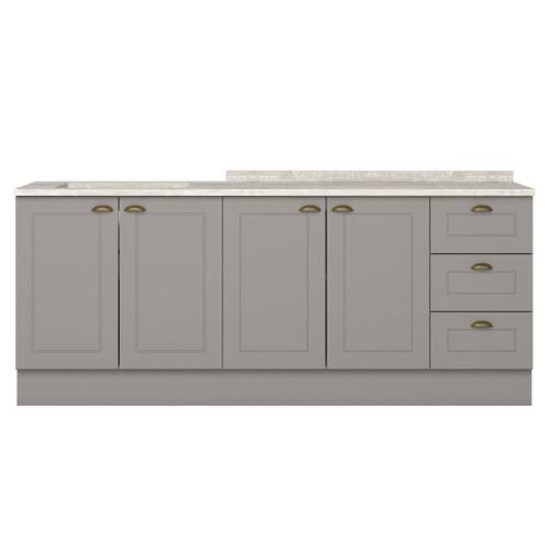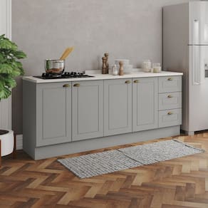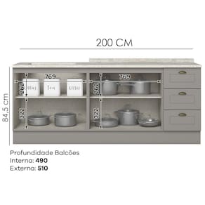 No conceito inspirado nas cozinhas estilo americano. Um conjunto modular de cozinha sendo 4 peças: 1 balcão de 120 cm (com tampo de 120 cm), 1 balcão de 80 cm (com tampo para Cooktop de 80 cm, usinado para Cooktop de 4 bocas, com pré-marcação para Cooktop de 5 bocas), (NÃO ACOMPANHA FOGÃO COOKTOP). Todo o conjunto com estrutura feita 100% MDF de 15mm (fundo com 3mm, tampos em MDP de 25mm) , portas com dobradiças metálicas 35 mm com amortecimento e fechamento suave, 3 gavetas com corrediças telescópicas suportando 3kg cada, total de 2 prateleiras espaçosas suportando até 8 kg. Cozinha com acabamento em pintura UV texturizada (fosco), portas e gavetas com detalhes de usinagem em baixo relevo, que proporciona beleza e facilidade ao limpar, além do destaque em seus puxadores em metal zamac. Medidas do recorte do cooktop 51,5 x 36 cm. Este móvel chegará na sua casa separado em 04 volumes.