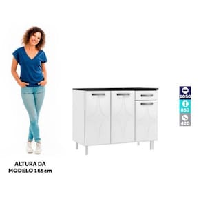Características: Peso suportado: 45kg Puxador: Plástico Número de portas: 3 Número de gavetas: 1 Tampo: Sim Material do tampo: mdp com revestimento laminado, cor preto e 15mm de espessura Quantidade de prateleiras: 1 Pés: 4 em Polipropileno com 13cm