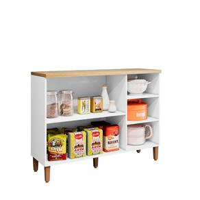 O Balcão Vega se adapta com perfeição em diversos ambientes, trazendo mais beleza, comodidade e qualidade. Possui 3 portas, 3 prateleiras internas e pés reguláveis, tudo isso para garantir mais organização dos seus utensílios e trazer mais facilidade no seu dia a dia. \nEspecificações do Produto Montado: Altura: 93 cm Largura: 104 cm Profundidade: 40 cm Peso: 31Kg\nGarantia: 3 meses Material da estrutura: MDF 18mm Possui Tampo: Sim Número de Portas: 03 Número de Prateleiras: 03 Rodizio incluso: Não Possui Pés: Sim Altura dos Pés: 14 cm Pés Regulaveis: Sim.\nObservações: Não oferecemos serviço de montagem, mas todos os produtos possuem manual de montagem com o passo a passo. Recomendamos contratar um profissional de montagem. Pode existir alguma diferença de tonalidade entre a foto e o produto, devido ao tratamento de imagens e à calibração de cores do monitor.