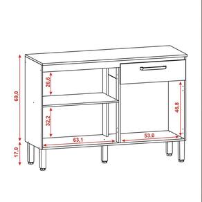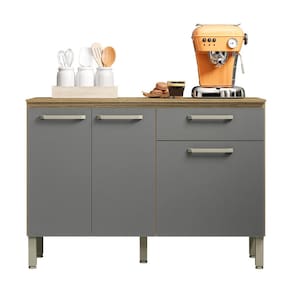 Balcão Versalhes Cozinha com Tampo 3 Portas e 1 Gaveta - Cinza