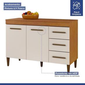 Conquistar a cozinha dos sonhos será uma simples tarefa com este Balcão Virtus! Você escolhe o lugar em que ele se encaixa melhor, deixando o ambiente com um visual único e de acordo com o seu gosto. Elegante, possui design clean e leve, tornando os momentos no cômodo mais agradáveis. Já as 2 portas e 3 gavetas oferecem a possibilidade de organizar seus utensílios domésticos com muito mais facilidade e praticidade. Não é ótimo?