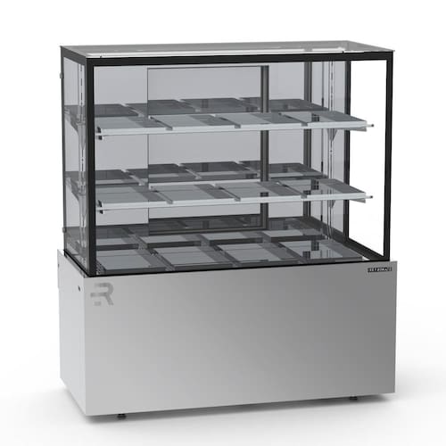 Este balcão é construído com revestimento interno e saia em aço inox, garantindo durabilidade e resistência. As portas traseiras de bater são feitas de aço galvanizado pintado. O balcão possui uma câmara em vidro duplo temperado e iluminação LED, que realça a apresentação dos alimentos.