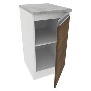 - Possui uma porta convencional com puxador em alumínio e dobradiças metálicas com amortecimento para o fechamento suave. Internamente tem uma prateleira e contempla o tampo do balcão.