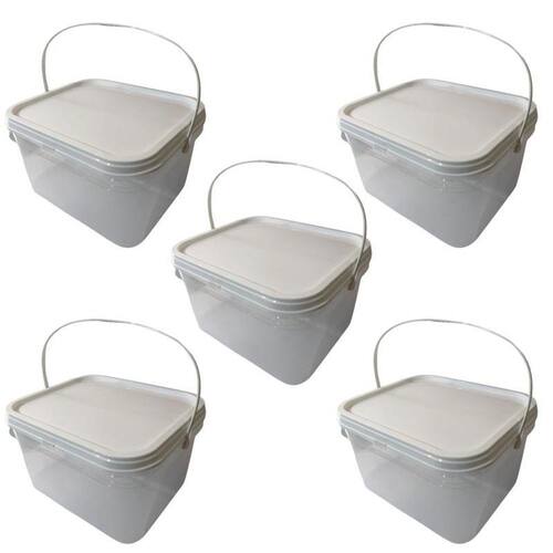 Balde retangular transparente 2.4 litros com tampa lacre de segurança 100% bpa free - kit 05 peças nastripack