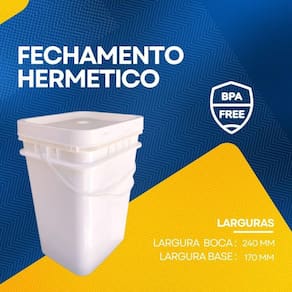 o balde de 20 litros retangular para alimento com tampa lacre é um recipiente projetado para armazenar alimentos em grandes quantidades. Ele é fabricado em plástico resistente, pp polipropileno de alta densidade, que é seguro para o contato com alimentos. A forma retangular do balde permite que ele seja empilhado facilmente, o que economiza espaço no armazenamento. O tamanho de 20 litros é adequado para armazenar alimentos em grande quantidade, tornando-o uma opção popular para uso comercial em restaurantes, padarias, indústrias alimentícias, entre outros. Seu volume real abaixo da tampa é de 20,57 litros podendo chegar em 22,85 litros sem tampa até a borda do balde. A tampa lacre é uma característica importante deste balde, pois mantém o conteúdo fresco e protegido de contaminantes externos. Possui um sistema de encaixe que proporciona um fechamento seguro e hermético, impedindo a entrada de ar, poeira, insetos e outros elementos que possam prejudicar a qualidade do alimento. Além disso, o balde de 20 litros retangular para alimento com tampa lacre de segurança é facilmente higienizável, podendo ser lavado com água e sabão e diversas vezes. Isso o torna uma opção econômica e sustentável para o armazenamento de alimentos. Alguns dos principais benefícios do balde 20 litros retangular para alimento com tampa lacre incluem:
