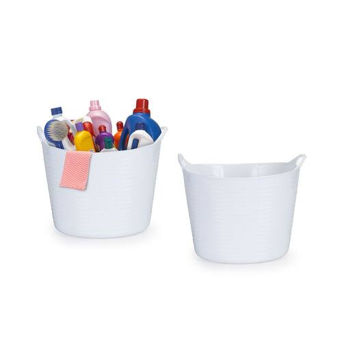 Cestos multiuso flexivel e versatil. Ideal para lavanderia, cozinha, jardinagem e brinquedos. Cesto com alça anatomica, forte e duravel. Facil de transportar, nao machuca as maos, empilhavel e facil de guardar.