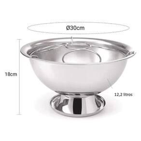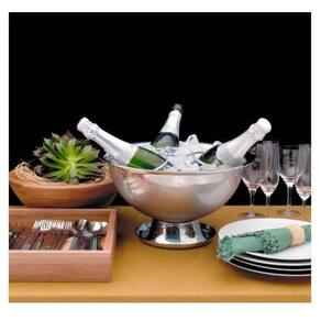 Produto sofisticado fabricado em aço inox de alta qualidade e resistência, garantindo brilho constante e qualidade em peça indispensável nas melhores recepções.Possui grelha separadora removível, extremamente útil para gelar rapidamente latinhas de cerveja/ refrigerante ou outro produto diverso de garrafa.Em sua base está localizado o sistema anti-transpirante, que não deixa molhar o local onde está fixada sua champanheira. Possui formato redondo com belíssimo acabamento brilhante no lado externo e na divisória, além de um acabamento escovado no lado interno.Muito prática, a peça acomoda bastante gelo e permite o repouso de variados tipos de bebidas, entre garrafas e latas, ou ainda apenas gelo para consumo.Ideal para ter em sua casa e servir champanhe, vinhos e até cervejas, com muito estilo. Capacidade para até 5 garrafas Dimensões aproximadas:Medidas: 30 x 30 x 18 alturaPeso: 1,3 kgsCapacidade 12,2 LitrosMaterialAço InoxFabricante: Forma Inox