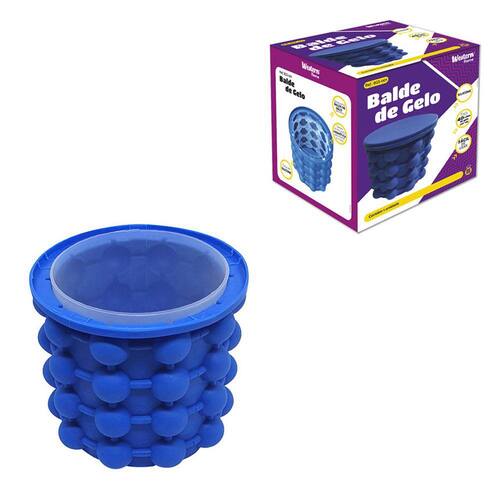 BALDE DE GELO SILICONE - Dimensões da Peça: 14 x 5,2 x 5,2cm - Dimensões da Embalagem: 14 x 14 x 13,5cm - Quantidade Master: 60 Peças - Dimensões Master: 70 x 42,5 x 55cm - Material: Silicone - Cor: Azul - Tipo de Embalagem: Caixa litografada - Marca: Western home - Origem: China - Contém: 1 unidade - Características: • Mantém as bebidas geladas. • Tampa hermética mantém o gelo sem odor. • Faça 40 cubos de gelo por vez; • Fácil de usar; - Modo de uso: • Lave antes do primeiro uso e depois a utilização. • Coloque água na forma. • Leve ao freezer ou congelador. - Cuidados: • Lave com sabão neutro e esponja macia. • Guarde estas instruções para futuras consultas. • Mantenha fora do alcance das crianças. - Sac Fornecedor: • Sac: 0800 607 1322 • Email: posvendas@etilux.com.br • Site: www.etilux.com.br - Garantia: • Em condições normais de uso, este produto tem garantia de 90 dias contra defeitos de material e fabricação, mediante apresentaç