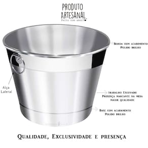 Balde de cerveja e gelo grande em alumínio térmico lixado 10l Balde de gelo / cerveja térmico em alumínio - 10 litros O balde de gelo térmico grande em alumínio anodizado e personalizado é o suporte ideal para conservar a temperatura de sua bebida de maneira prática e eficaz. Agora você poderá apreciar a sua bebida gelada por mais tempo com comodidade e estilo. Combina com qualquer ambiente e decoração, dando um toque de charme e sofisticação. Em sua festa, seu bar, boteco, sua área de churrasco, comemoração ou confraternização. Altamente resistente e leve, o balde de gelo em alumínio ajuda a conservar cervejas, energéticos, espumantes, refrigerantes, vinhos, vodkas e whisky na temperatura ideal com praticidade. Fabricado em alumínio anodizado tem um tratamento que lhe garante durabilidade, brilho, não amassa, não fura com facilidade e tem resistência a riscos.As vantagens do balde de geloDe acordo com sommeliers, especialistas em vinhos, cervejas e demais bebidas, o balde de gelo esfria drinks mais rapidamente do que o freezer convencional. para usá-lo é preciso colocar um pouco de água junto com o gelo. No caso do vinho tinto, recomenda-se colocar a garrafa pelo tempo de 05 a 10 minutos para obter a temperatura ideal. Os vinhos brancos precisam ficar cerca de 20 minutos para atingir a condição mais de adequada para consumo. Após esse tempo, recomenda-se retirar a garrafa do balde de gelo para não congelar. Para gelar espumantes, a duração indicada é de 30 minutos, porém, diferente do vinho branco, a bebida deve permanecer no balde de gelo para continuar na temperatura exata. As cervejas também esfriam de forma acelerada quando colocadas no balde de gelo.Sua alça em alumínio facilita o transporte e poderá te acompanhar em qualquer lugar que deseje levar. O seu balde de gelo em alumínio, além de ser térmico, também é uma ótima opção para presentear.Dimensões aproximadas do produto:Profundidade / altura: 19 cm // diâmetro fundo: 19 cm // diâmetro boca: 30 cmCaracterísticas do produto:- balde de gelo térmico em alumínio anodizado de alta qualidade e durabilidade;- produzido por artesões profissionais seguindo um padrão de qualidade que atenda o gosto dos nossos clientesCuidados:- recomendamos o uso de pano levemente umedecido para sua limpeza.- temperatura ambiente e qualidade do gelo podem influenciar no tempo de degelo.Garantia do produto:- o produto é muito bem acomodado dentro da caixa, e super embalado para evitar quebras, ainda assim possuímos um sistema de garantia e troca.Imagens meramente ilustrativas - produto artesanal, podendo variar de cor e/ou tonalidade