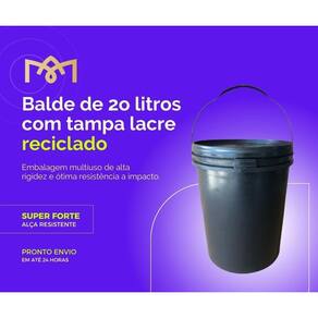 Este balde é fabricado a partir de material plástico reciclado de alta qualidade, O que o torna uma escolha sustentável e amiga do meio ambiente. Com uma capacidade de 20 litros, É ideal para armazenar e transportar produtos pastosos, granualados e líquidos, produtos químicos, produtos de limpeza e outros itens.