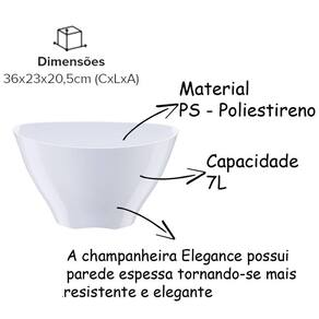 Visual: A champanheira Elegance possui parede espessa, tornando-se mais resistente e elegante.