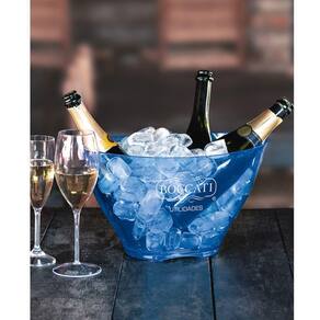 Sua forma é ampla o suficiente para acomodar uma ou mais garrafas de champanhe e pode incluir alças ou base com gel, para facilitar o transporte e garantir a temperatura ideal.