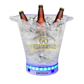 O Balde de Gelo de 5 Litros em Acrilico Poliestireno tem espaço para cerca de 3 Garrafas e é personalizado especialmente para sua Festa no Boteco, Bar, Despedida de Solteiro e Muito mais Para brindar com a galera com muito estilo e personalidade. Especificações: Capacidade: 5 Litros Cor: Transparente Luz LED: Branco Dimensões: Altura: 20 cm Diâmetro: 23 cm Quantidade: 1 Peça Personalização: Transfer Preto e Amarelo Material: Acrílico Poliestireno