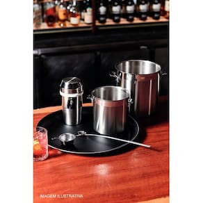 Este belo balde de gelo produzido totalmente em aço inox combina perfeitamente com qualquer ambiente. Garante praticidade aos presentes, dando um toque de sofisticação em função de seu acabamento fosco com borda em brilho.