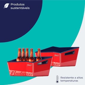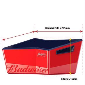 Indicado para: Consumo da cervegela Budweiser em todas suas variações. Material: PSAI (Poliestireno de Alto Impacto) Capacidade: 5 garrafas de Budweiser de 600ml. Medidas: 450mm de largura x altura 250mm x 300mm de profundidade