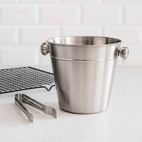 Balde de gelo e pegador produzidos em aço inoxidável, material resistente que não mancha, suporta variações de temperatura e garante durabilidade. Essencial para festas, reuniões e momentos de lazer, mantém as bebidas na temperatura certa com praticidade e elegância. Pegador de gelo que facilita o uso no dia a dia. Moderno, higiênico e fácil de limpar, pode ser levado à lava louças sem perder sua qualidade.