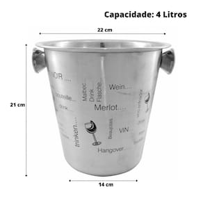 Balde de gelo Inox 4L e com pegadores laterais, facilita o preparo de suas bebidas, oferece mais requinte e conserva as bebidas na temperatura ideal por mais tempo, produtos em aço inoxidável prolonga a temperatura do alimento e bebidas, evita contaminações.