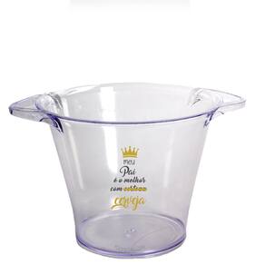 Balde De Gelo Personalizado Dia Dos Pais Tema Cerveja O Balde de Gelo de 5 Litros com espaço para em média 3 Cervejas tem possibilidade de personalização com o nome da sua festa ou marca, não existe melhor bebida para celebrar com o seu pai do que cerveja, sempre geladinha no seu balde personalizado. Não deixe de comemorar essa data tão especial com o seu pai junto com o balde de gelo KrystalON. Características: Material: Poliestireno Acrílico PS , Altura: 20 cm, Diâmetro: 23 cm, Capacidade: 5 Litros, Cor: Transparente Ean: 7897581921380