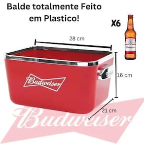 Quer servir suas bebidas com muito mais estilo? Chegou o balde de gelo para bebidas da Budweiser. Produto licenciado e feito de plástico resistente, sendo leve e prático para carrega-lo.