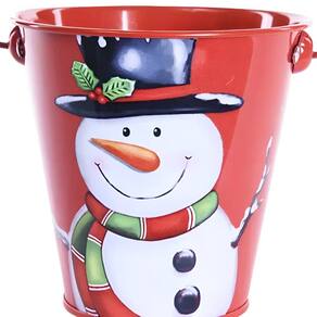 Balde Pequeno de Metal com Boneco de Neve – Decoração Natalina
