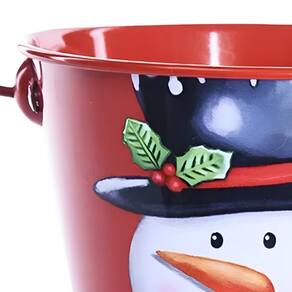 Dê um toque especial ao seu ambiente com este encantador balde de metal com estampa de boneco de neve. Perfeito para criar um clima natalino acolhedor, ele é superversátil e pode ser utilizado de diversas formas: