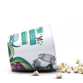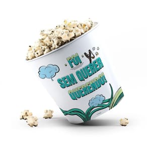Balde de Pipoca com capacidade aproximada de 3,5 Litros, feito de plástico rigido injetado e personalizado 360 graus com adesivo especial e película protetica fosca.