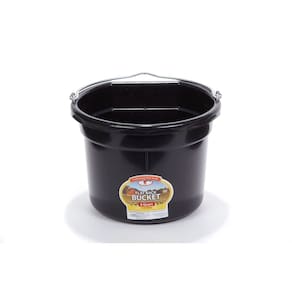 Balde de ração animal de plástico com encosto plano Little Giant® | Balde de ração para animais com alça de metal | Suprimentos de alimentação e rega para barracas de cavalos (preto, 8 litros)