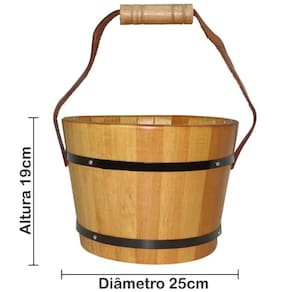 Produzido com madeira de alta qualidade, o balde se destaca por sua resistência ao calor e à umidade, garantindo durabilidade e segurança durante o uso. Seu design rústico e sofisticado harmoniza perfeitamente com o ambiente da sauna, proporcionando um toque elegante e funcional ao espaço. Além disso, sua estrutura robusta assegura uma utilização prática e eficiente.