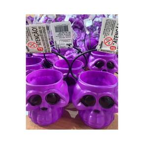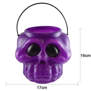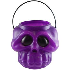 Conteúdo: 1 Balde Cabeça de Esqueleto Grande Roxo para Decoração Halloween