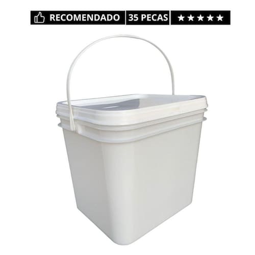 Balde retangular 3. 6 litros com tampa lacre de segurança 100% bpa free - 35 peças