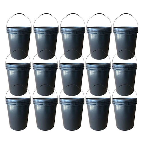 Balde Plástico 20 Litros com Tampa de Segurança e Alça Plástica 15 PeçasBaldes com tampa e alça plástica fabricados com material reciclado PP 05 PEAD 02 contaminante, não utilizar para envasar ou armazenar alimentos Exclusivo para envase de tintas, argamassas, graxas, compostagem, óleos e materiais da construção civilTampa Lacre com Lacre de Segurança fazendo com que seu encaixe seja mais eficaz e mais seguro.Utilizados nas indústrias químicasObras para misturar resina epóxiAutonivelantesCimento líquido maxpisos e outrosCimento queimado líquido maxpisosResina acrilicaAssim como outros tipos de insumos, matéria prima Alta Rigidez Ótima resistência a impactoCapacidade nominal volume comercial indicado 20 LitrosCapacidade real volume máximo do balde com a tampa fechada 21 LitrosPeso: com tampa e alça 835 g.Você recebera neste Kit:15 x Baldes Pretos de 20 Litros com Alça Plástica15 x Tampas Pretas com Lacre de SegurançaVolume Total: 21 LitrosPeso Unitário: 600 gramasDiâmetro Externo Superior: 304 mmDiâmetro Externo Fundo: 260 mmAltura do Balde: 368 mmAltura com Tampa: 370 mm