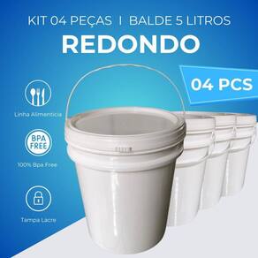 Balde 5 litros novo atóxico com tampa lacre e alça plástica nastripack - kit 04 peças