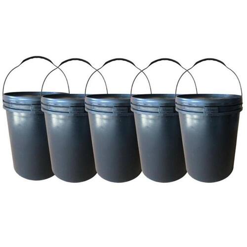05 x Baldes Pretos de 20 Litros com Alça Plástica 05 x Tampas Pretas com Lacre de Segurança