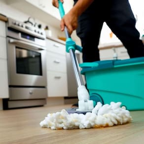 Acompanha esfregão de 86cm com 2 espumas de microfibra, desenvolvido para facilitar a limpeza e não agredir o piso com riscos ou manchas;