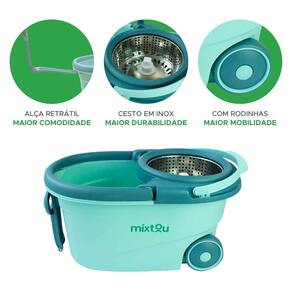 O balde mop 360graus da mixtou é perfeito para a limpeza geral nos mais diversos ambientes. Com design moderno, tem capacidade para 18 litros e conta com um eficiente sistema de centrifugação, além de dispenser para produtos químicos, alça e rodinhas para facilitar o transporte, proporcionando maior ergonomia e praticidade durante a utilização.
