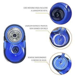 Balde Perfect Mop Pro 360 Inox Com 3 Refis Azul Balde Perfect Mop Pro 360 Inox Com 3 Refis Com uma concepção inovadora, baseada na teoria da centrifugação, apresenta um excelente poder de limpeza e 100% de centrifugação. Com um fantástico dispositivo de centrifugação você pode controlar o percentual de umidade do mop facilmente. Produzido em microfibra, o mop apresenta um grande poder de absorção de poeira ou água com secagem fácil, limpando de forma segura e eficiente. Seu elegante design faz com que gire 360 graus e permite chegar em qualquer canto onde antes não era possível. - 3 refis, Limpeza Úmida - Pò - Esfregão - centrifuga inox removível; - alça para carregamento mais resistente; - eixo interno para facilitar a lavagem do refil; - cabo com inclinação de 180°; - cabo com sistema de trava on/off para regulagem de altura e função giratória; - base inox mais resistente; - lavagem rápida prática e sem grande esforço; - remove rapidamente o excesso de agua; - material, mais resistente e durável dentre todos da categoria Dimensões: Cabo: Altura max: 1,60m; Balde: Altura: 24 cm; Largura: 28 cm; Comprimento: 46 cm; Itens inclusos: 1 balde perfect mop pro com centrifuga inox removível 1 cabo ajustável 1,60 m 1 base do esfregão 2 refis Garantia de 90 dias com o fabricante Imagens meramente ilustrativa