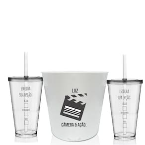 O Kit Personalizado Balde de pipoca e Copo com Tampa e Canudo é ideal para você fazer aquele lanchinho assistindo sua programação favorita São baldes de pipoca e copos personalizados especialmente para você curtir bastante Especificações: Material Balde: Polipropileno, Altura: 15,5 cm, Diâmetro: 17cm, Capacidade: 2L, Cor: Branco, Tamanho: único, Material Copo: Acrílico Ps, Altura Copo: 15 cm, Diâmetro Copo: 9,5 cm, Capacidade Copo: 550 ml, Cor Copo: Transparente, Quantidade: 3 peças 1 balde e 2 Copos com tampa e canudo Ficha técnica - Cor: Branco Ean: 7897581948264