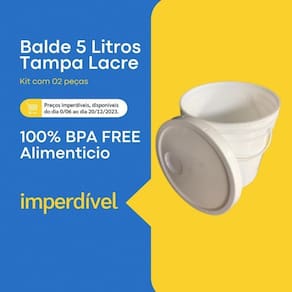 02 x Baldes de 5 Litros Branco com Alça Plastica 02 x Tampas de 5 L Branca com Lacre de Segurança