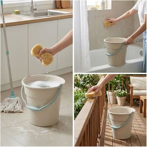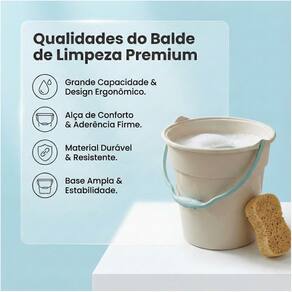 Balde com design clássico: alça ergonômica - que facilita o manuseio e escala medidora de líquidos ideal para calcular o consumo adequado em cada tarefa diária.