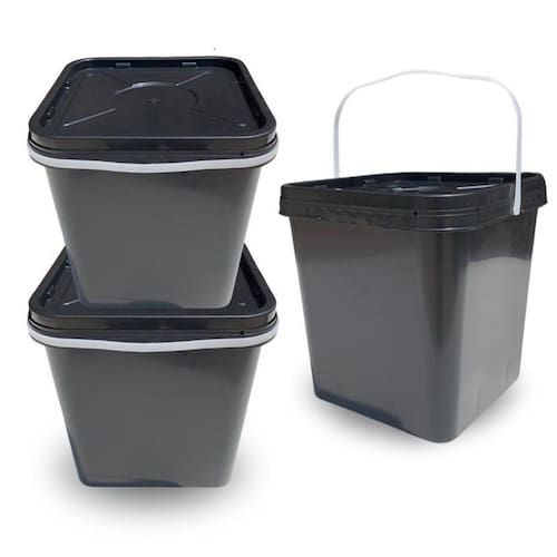 02 X Baldes Quadrados Pretos de 16 Litros com Alça Plastica Branca