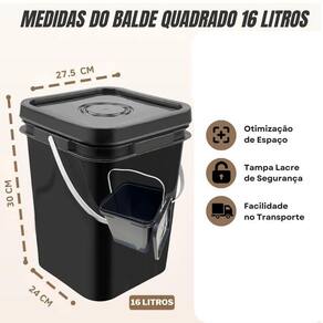 Balde plástico 16 litros, Balde quadrado 16 litros, Balde com tampa e alça, Balde industrial 16 litros, Balde para construção civil, Balde para tintas, Balde para obras, Balde resistente com tampa, Balde com lacre de segurança, Balde para mistura de materiais, Balde para resina epóxi, Balde polipropileno 16 litros, Balde com alça plástica, Balde para compostagem, Balde para graxa e óleo, Balde de armazenamento industrial, Balde para transporte de produtos químicos, Balde sustentável reciclado, Balde grande para construção, Balde de armazenamento seguro.