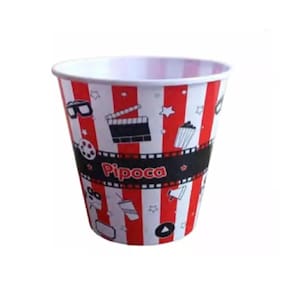 Balde para Pipoca Com uma estampa alegre e pipoca para todo lado, este balde de pipoca é o que você precisa para curtir um filme com a galera. Num tamanho super bacana para muita pipoca, assim você não precisa pausar o filme para reabastecer a sua pipoca.Material: PlásticoMedidas aproximadas: Largura da boca: 18 cm, Altura: 18 cmLitros: 3 L