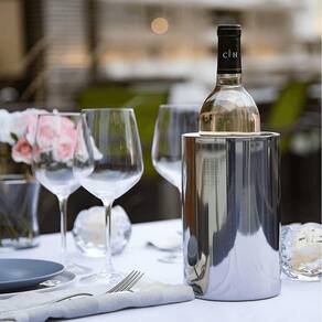 O Balde Resfriador de Vinho em Inox Parede Dupla 1500ml é um produto projetado para manter a temperatura do vinho durante o serviço. Ele é feito de aço inoxidável de alta qualidade, que é durável, resistente à corrosão e fácil de limpar.