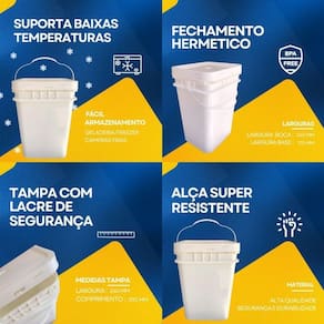 o balde de 20 litros retangular para alimento com tampa lacre é um recipiente projetado para armazenar alimentos em grandes quantidades. Ele é fabricado em plástico resistente, pp polipropileno de alta densidade, que é seguro para o contato com alimentos. A forma retangular do balde permite que ele seja empilhado facilmente, o que economiza espaço no armazenamento. O tamanho de 20 litros é adequado para armazenar alimentos em grande quantidade, tornando-o uma opção popular para uso comercial em restaurantes, padarias, indústrias alimentícias, entre outros. Seu volume real abaixo da tampa é de 20,57 litros podendo chegar em 22,85 litros sem tampa até a borda do balde. A tampa lacre é uma característica importante deste balde, pois mantém o conteúdo fresco e protegido de contaminantes externos. Possui um sistema de encaixe que proporciona um fechamento seguro e hermético, impedindo a entrada de ar, poeira, insetos e outros elementos que possam prejudicar a qualidade do alimento. Além disso, o balde de 20 litros retangular para alimento com tampa lacre de segurança é facilmente higienizável, podendo ser lavado com água e sabão e diversas vezes. Isso o torna uma opção econômica e sustentável para o armazenamento de alimentos. Alguns dos principais benefícios do balde 20 litros retangular para alimento com tampa lacre incluem: