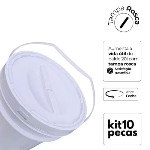 Balde de 20 litros com tampa rosca e alça plástica nastripack - 10 peças Comercializamos o balde vazio e sem impressão. O título do anúncio serve apenas como sugestão de usabilidade. Se você busca um balde resistente, seguro e de alta qualidade para armazenar alimentos ou produtos químicos, o balde de 20 litros com tampa rosca da nastripack é a escolha perfeita fabricado com polipropileno copolímero atóxico e 100% bpa free, ele garante proteção total ao conteúdo armazenado, além de um fechamento seguro e prático. Nesta compra você vai receber: - 10 x baldes 20 litros branco com alça plástica - 10 x tampas rosca branca Especificações técnicas do balde 20 litros com tampa rosca Código do produto: bd20lr Material: polipropileno copolímero atóxico e bpa free Fechamento: tampa rosca tr16 Capacidade real: 20,85 litros Dimensões do balde 20 litros com tampa rosca nastripack Altura com tampa: 381mm Diâmetro superior com tampa: 295mm Diâmetro inferior: 251mm Peso total: 720g balde + tampa + alça plástica Alça inclusa: plástica Temperatura de armazenamento: -5c a +75c A tampa rosca foi projetada para proporcionar vedação hermética, evitando vazamentos e protegendo contra agentes externos. Esse sistema de fechamento é ideal para armazenagem e transporte seguro, garantindo a integridade do produto. O design funcional facilita o manuseio e empilhamento. Com a tampa rosca, abrir e fechar o balde se torna um processo simples e eficiente, sem a necessidade de ferramentas adicionais. Isso faz com que o produto seja altamente indicado para segmentos que exigem praticidade e segurança, como indústrias alimentícias, químicas e farmacêuticas. A nastripack é especialista em soluções de embalagem industrial, e este balde de 20 litros com tampa rosca é um dos destaques da nossa linha de produtos. Além de seguro e resistente, ele possui um excelente custo-benefício, sendo uma opção confiável para armazenar líquidos, pós e granulados com total proteção. Ao escolher a nastripack, você garante um balde de 20 litros com tampa rosca que atende aos mais altos padrões de qualidade e segurança. Este modelo é amplamente utilizado por empresas que buscam durabilidade e vedação eficiente em seus processos logísticos e de armazenamento. Por que comprar o balde 20 litros com tampa rosca da nastripack - material seguro e resistente: fabricado em polipropileno de alta qualidade, livre de bpa, garantindo total segurança no armazenamento de alimentos e produtos químicos. - fechamento hermético: a tampa rosca tr16 garante vedação perfeita, evitando vazamentos e protegendo contra umidade e contaminação externa. - capacidade real de 20,85 litros: ideal para armazenar líquidos, pós, grãos e outros produtos de forma segura e eficiente. - versatilidade no uso: atende indústrias alimentícias, químicas, farmacêuticas, cosméticas e agrícolas. - resistência a altas e baixas temperaturas: pode ser utilizado em ambientes de -5c a +75c sem comprometer sua estrutura. - empilhamento seguro: possui design que permite empilhamento otimizado, reduzindo espaço no armazenamento e transporte. - alta durabilidade: desenvolvido para suportar impactos e desgastes do uso contínuo sem deformações. - fácil higienização: superfície lisa que facilita a limpeza e impede o acúmulo de resíduos. Aplicações do balde de 20 litros com tampa rosca da nastripack: - indústria alimentícia: armazene óleos, grãos, farináceos, líquidos e outros ingredientes com total segurança alimentar. - produtos químicos: ideal para armazenar tintas, solventes, fertilizantes, agroquímicos e produtos industriais e farmacêuticos. Compre agora com de qualidade Compra segura com qualidade garantida Não perca tempo e adquira agora mesmo o balde de 20 litros com tampa rosca para garantir armazenamento seguro e eficiente para o seu negócio