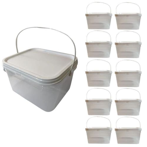 10 x baldes retangulares transparentes com alça plástica nastripack, com capacidade de 2.4 litros